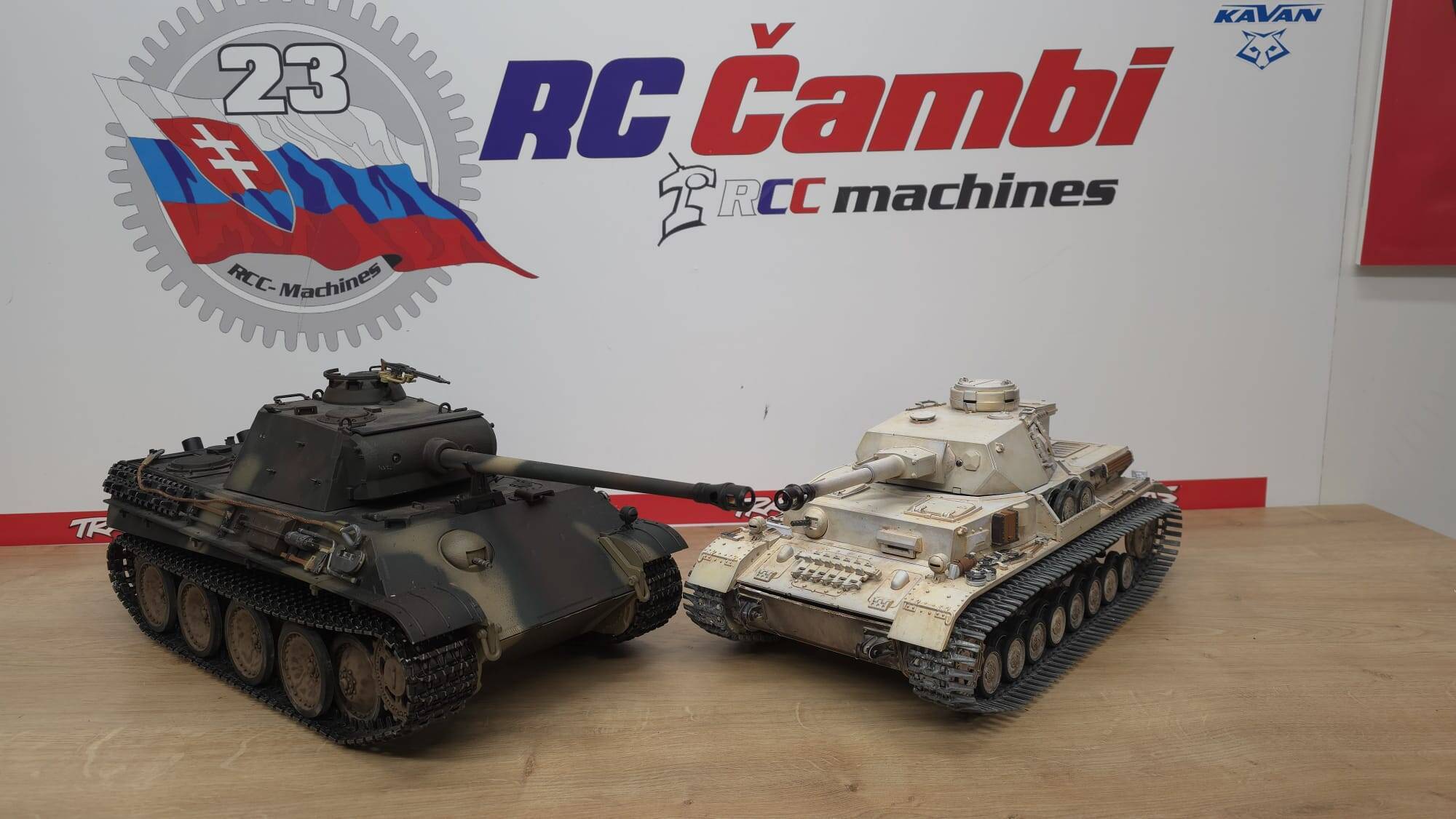 Polomaketa RC tanku v mierke 1:16 s elektrickým pohonom, funkčným infra bojový systém (IR) zvukovým a dymovým modulom.